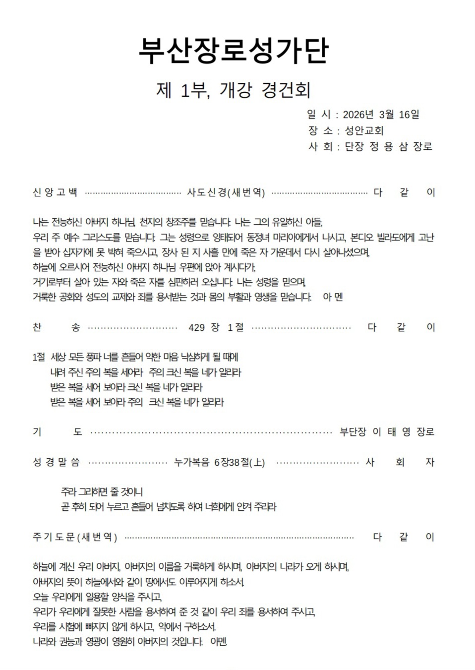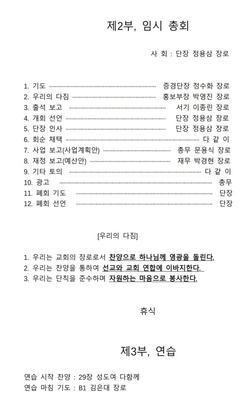 사회 : 단장 정용삼 장로